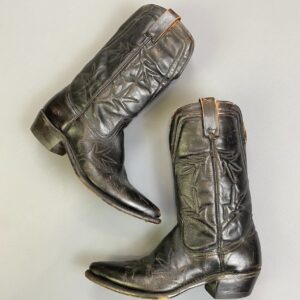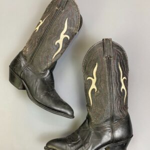 *AS IS* LIGHTLY DISTRESSED LEATHER POINTED TOE EMBROIDERED DETAIL RODEO WESTERN COWBOY BOOTS MADE IN USA