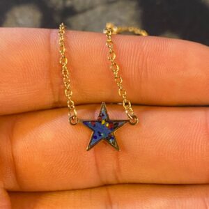 BLUE STAR CONFETTI PENDANT GOLD LINK CHAIN 1980S DEADSTOCK