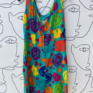 SUMMERY 1980S NEON FLORAL FISH MINI DRESS SLEEVELESS HAND PAINTED IN MAUI