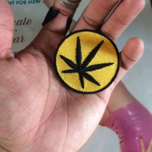 POT PLANT LEAF EMBROIDERED PATCH CIRCULAR SHAPE