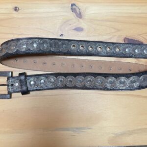 LEATHER BELT WITH ROUND CHAINMAIL PATTERN AND FLAT CIRCLE STUDS