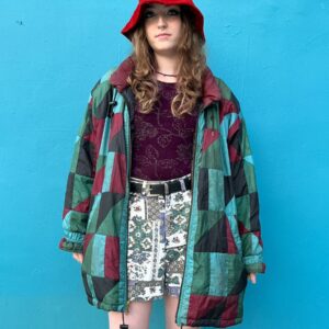 *AS-IS* 1980S PATCHWORK DESIGN LONG ZIP UP NYLON JACKET