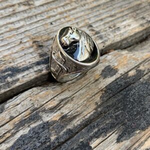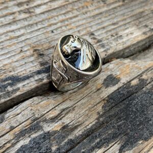 EQUINE HORSE HEAD BLACK ENAMEL THREE SIDED RING WITH COWBOY BOOTS AND HAT EQUESTRIAN