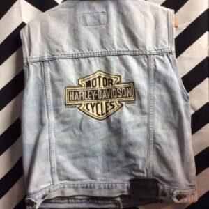 VINTAGE HARLEY DAVIDSON DENIM VEST – EMBROIDERED LOGO FULL BACK – ACID WASHED