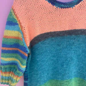 COLORFUL KNIT CROP SLEEVE SWEATER