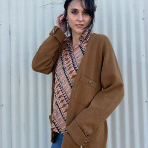 AWESOME DIAMOND PATTERN BUTTON UP KNIT CARDIGAN SWEATER