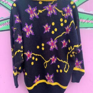 1980S-90S FUNKY COLORFUL STAR DESIGN KNIT COLLARED SWEATER