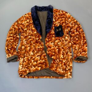 *AS-IS* STUNNING! 1950S FUNKY BRUSH STROKE PATTERN FUZZY MENS SMOKING JACKET MONOGRAMED POCKET
