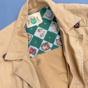 *AS-IS* SOFT CANVAS HUNTING JACKET ANIMAL PRINT FLANNEL LINING & LEATHER BUTTON ACCENTS