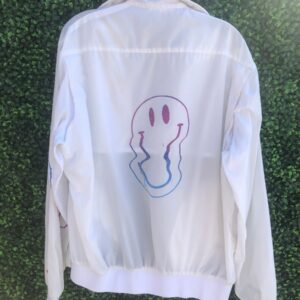 RARE RAINBOW ACID TRIP SMILEY FACE MOCK NECK WINDBREAKER JACKET