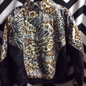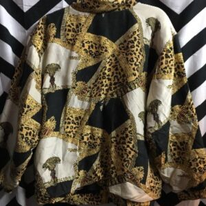 BOMBER JACKET – SILK – QUILTED – ANIMAL PRINT W/GOLD PIPING