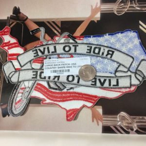 LARGE BACK PATCH- USA COUNTRY SHAPE RIDE TO LIVE, MOTORCYCLE