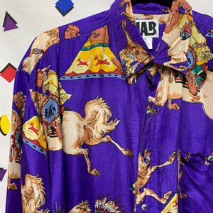 SILK BLOUSE W/ NATIVE AMERICAN / SOUTHWESTERN PRINT