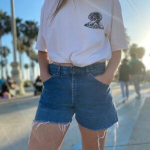 LEE RIDERS HIGH WAISTED CUTOFF SHORTS LIGHT WASH LONGER CUT AS-IS