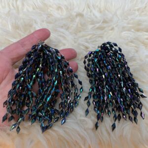 AMAZING 1980S TASSELED BEADED IRIDESCENT CLIP ON EARRINGS