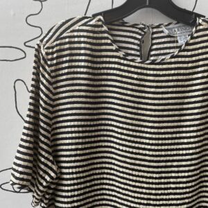 AS-IS THICK RIBBED STRIPED GEOMETRIC CREW NECK SHORT SLEEVE PULLOVER SHIRT