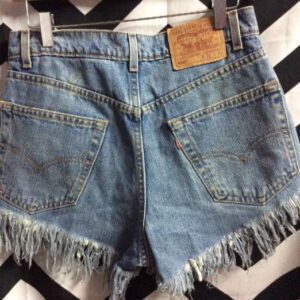 LEVIS DENIM SHORTS – CUTOFF – 550 – ZIP-FLY – EMBROIDERED DESIGN – FRAYED