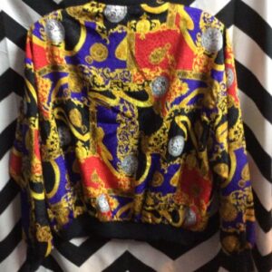 1990’S BOMBER JACKET – BAROQUE STYLE – JEWEL & BEAD PRINTED DESIGN – COTTON CUFFS & COLLARLRead more