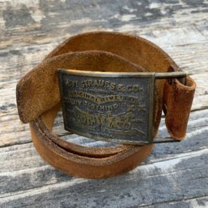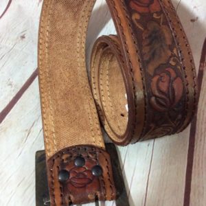 BELT – LEATHER – WIDE – EMBOSSED – SQUARE BRASS BUCKLE