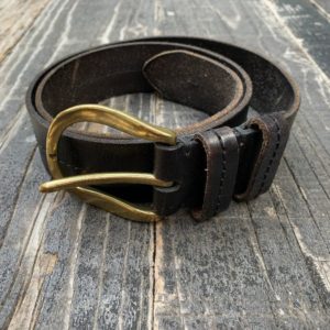 THICK BROWN LEATHER BELT STITCHED MIDDLE SEAM SOLID BRASS HARDWARE