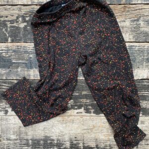 1980S THE BODY CO. BLACK CAPRI PAINT SPLATTER LEGGINGS