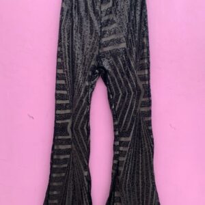 FULLY SEQUINED GEOMETRIC DESIGN DUAL LAYERED BELL BOTTOM PANTS ELASTIC WAIST BAND