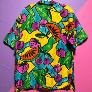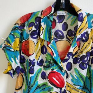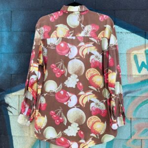 1980S ALLOVER FRUIT PRINT SHORT SLEEVE BUTTON DOWN BLOUSE BOXY CUT
