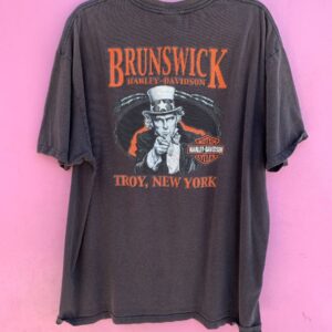 HARLEY DAVIDSON SHIELD W/ EAGLE SILHOUETTE POCKET W/ UNCLE SAM GRAPHIC ON BACK BRUNSWICK TROY NYT-SHIRT