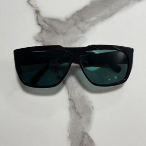 HEAVY BLACK FRAME NAPOLI GEOMETRIC SHAPE BROW CUSTOM TEAL LENSE SUNGLASSES
