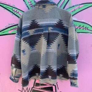 CROPPED HEAVY TEXTILE WOOL BLEND AZTEC DESIGN BUTTON DOWN JACKET