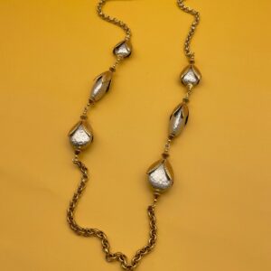 GORGEOUS! HEAVY GOLD & SILVER FOLIAGE BEADED DESIGN CHAIN LINK NECKLACE