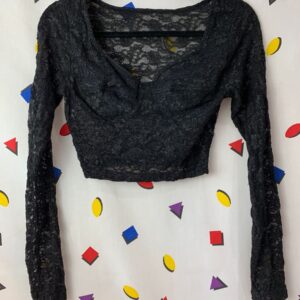 CROPPED FLORAL LONG SLEEVE LACE TOP CUPPED BUST