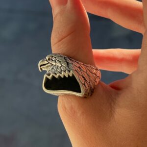 LARGE ENAMEL EAGLE HEAD FEATHER WRAPPED RING