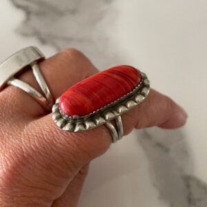 LARGE OVAL RED CORAL STERLING SILVER RING