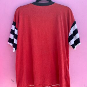 AS-IS LARGE FACE DONALD DUCK GRAPHIC T-SHIRT STRIPED SLEEVES