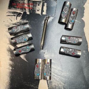 ETCHED PEWTER SAN FRANCISCO 49RS DESIGN CORAL & TURQUOISE INLAY LIGHTER SLEEVE