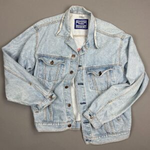 AWESOME LIGHT WASHED PERFECTLY WORN LEVIS DENIM JACKET WITH BLUE FLANNEL LINING