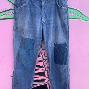 THRASHED LIGHT WASH CARPENTER PANTS W/ PATCHES