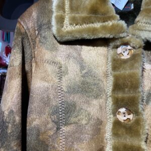 SUBTLE FLORAL BUTTON UP FUZZY FAUX FUR PATCHWORK JACKET FUR LINED INTERIOR