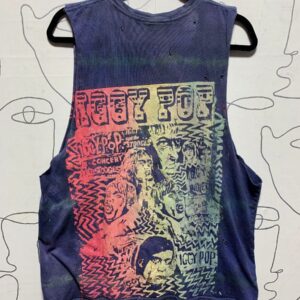 IGGY POP AND THE STOOGES FRONT AND BACK HAND PAINTED GRAPHIC CUSTOM BLEACHED SHIRT WITH CONTRAST STITCHING