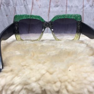OVERSIZED RETRO SQUARE TRI-COLORED GLITTER FRAMED SUNGLASSES