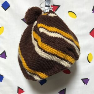 VINTAGE STRIPED BERET STYLE KNIT BEANIE WITH POM POM WINTER HAT