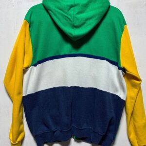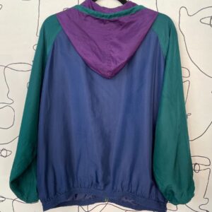 1990S COLOR BLOCK SILK ZIP UP HOODED JACKET