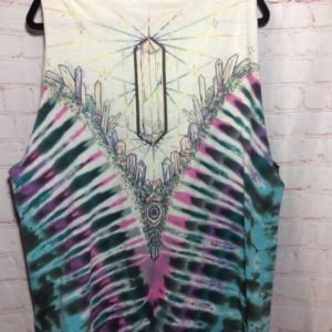 TATTERED DISTRESSED MOON CRYSTALS TIE-DYED CUT-OFF SLEEVELESS SHIRT