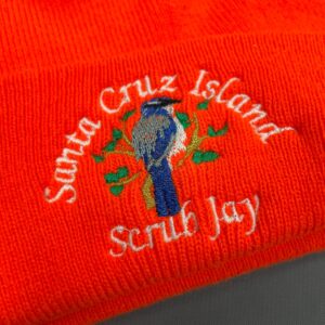 EMBROIDERED SANTA CRUZ ISLAND BLUE JAY NEON ORANGE BEANIE