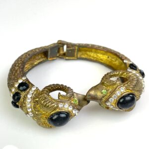 *AS-IS* OXIDIZED BRASS JEWELED DOUBLE ARIES RAM HINGED CUFF BRACELET