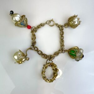 SUPER COOL! CHUNKY 1980S CHAIN LINK BRACELET OVERSIZED HANGING JEWEL BAUBLES