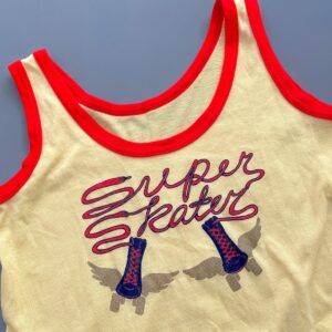 SOOO GOOD! 1970S SUPER SKATERS, FLYING ROLLER SKATES GRAPHIC NEON RINGER TANK