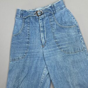 *AS-IS* CUTE! 1970S HIGH WAIST BUCKLE BACK WIDE LEG DENIM JEANS