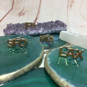 AIRPORT CODE RING SOLID BRASS WRAP AROUND ADJUSTABLE SHANK LAX SFO MIA